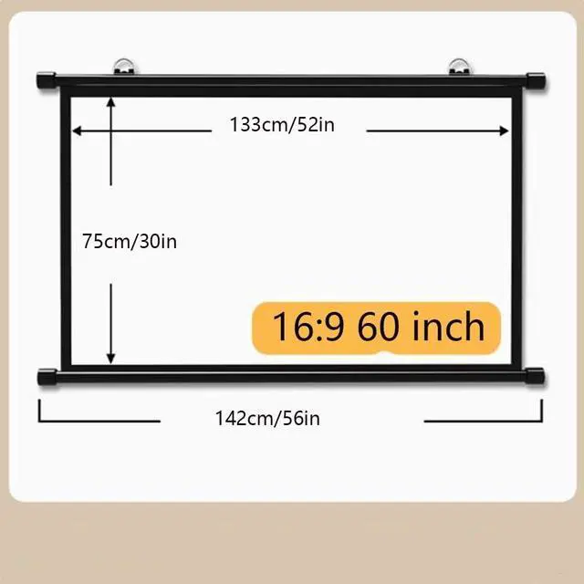 60-inch projection screen: The manual 60-inch drop-down projection screen gives you a 16:9/4:3 aspect ratio and a wide 160-degree field of view, designed for universal projection in any room, making it ideal for use in the home, office, or classroom