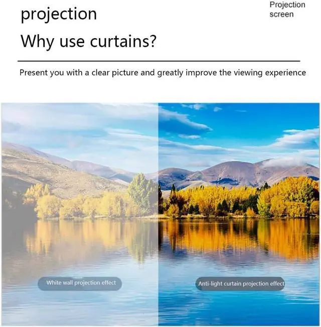Material: Made of natural polyester fabric, the projection is sharper and brighter than most other projection screens, and the projection screen is thicker and smoother, and it will not wrinkle when folded
