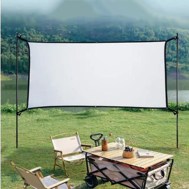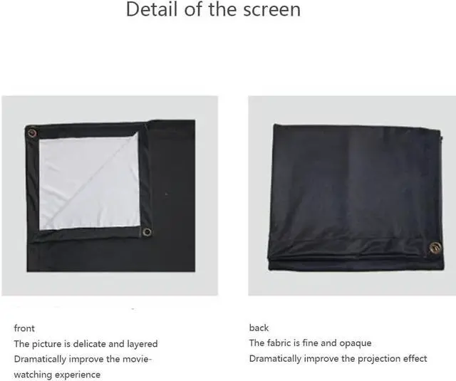 Wide range of applications: The projection screen and bracket can be packed in a portable tote bag, which is a good choice for travel and camping, does not take up extra space, is easy to carry, and can also be used in indoor and outdoor scenes such as homes, schools, churches, weddings, camping, offices, parks, etc