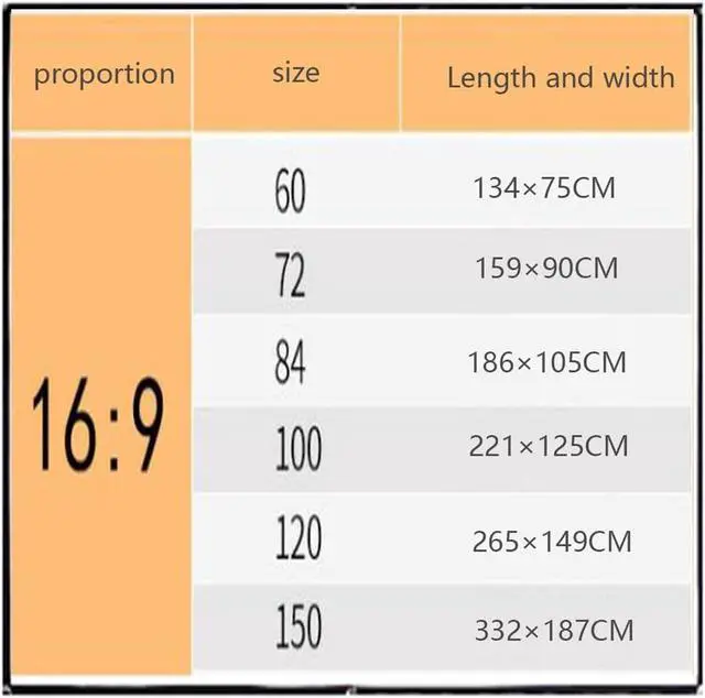 Universal sizes: 60 inches, 72 inches, 84 inches, 100 inches, 120 inches, 150 inches (you can refer to the size chart)