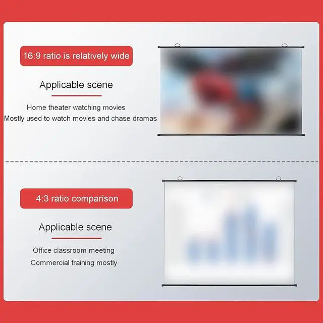 The projection screen can be easily hung on the wall hook and can be taken down at any time. The projection screen is compact and can be placed in a corner after folding, making it very easy to carry.