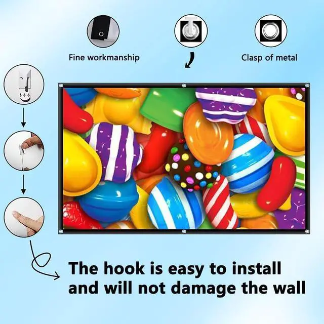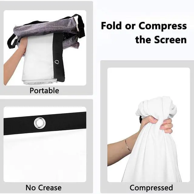 Portable: The lightweight and foldable projector screen is easy to store and carry. It can be folded into a small size and placed in your backpack or suitcase so that you can take it anywhere you want to go