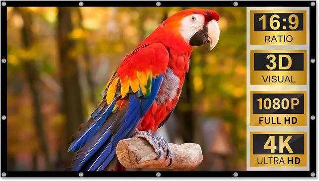 Large Projection Screen: The 16:9 large projection screen size allows you and your family to be immersed in the stunning picture even on movie night, allowing you to enjoy the big screen of the cinema anytime, anywhere