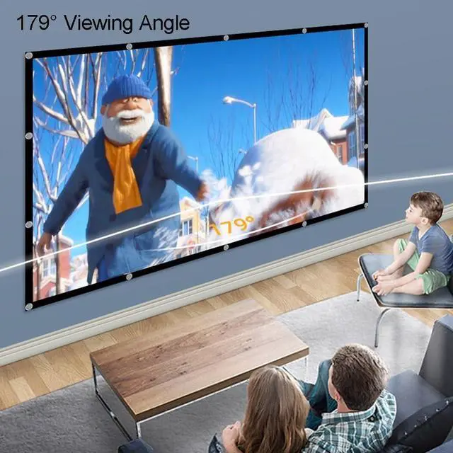 Projector screen is made of canvas fabric with picture gain and 180° viewing angle, support 4K HD projection, comfortable experience for different viewing angles
