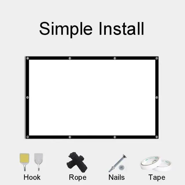 Projection screen includes 1x projection screen with hooks and ropes, meets all the needs of different scenarios such as home theater, classroom, office, etc