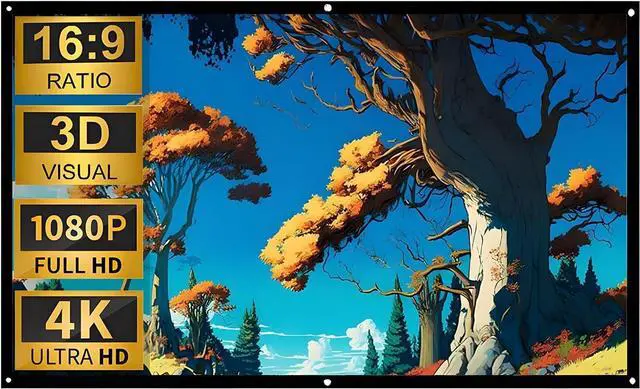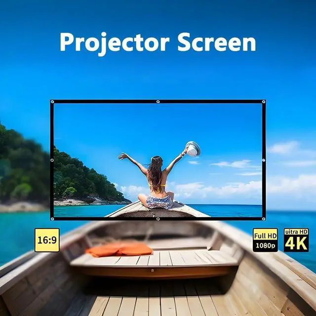 160-degree viewing angle: The projection screen has a wide viewing angle of up to 160°, 4K HD, 16:9 aspect ratio, and is easy to clean. The compact design gives you more fun and immerses you in the movie experience, making for group gatherings and movie nights