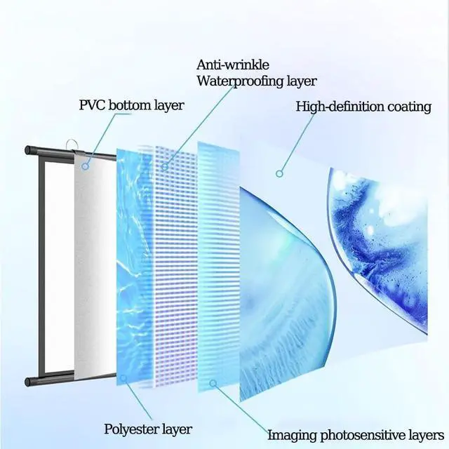 Durable: The high-quality projection surface is housed in a square enclosure, resulting in a cleaner appearance and smoother installation on walls or ceilings. It can be rolled up when not in use, dustproof and durable, and easy to store.