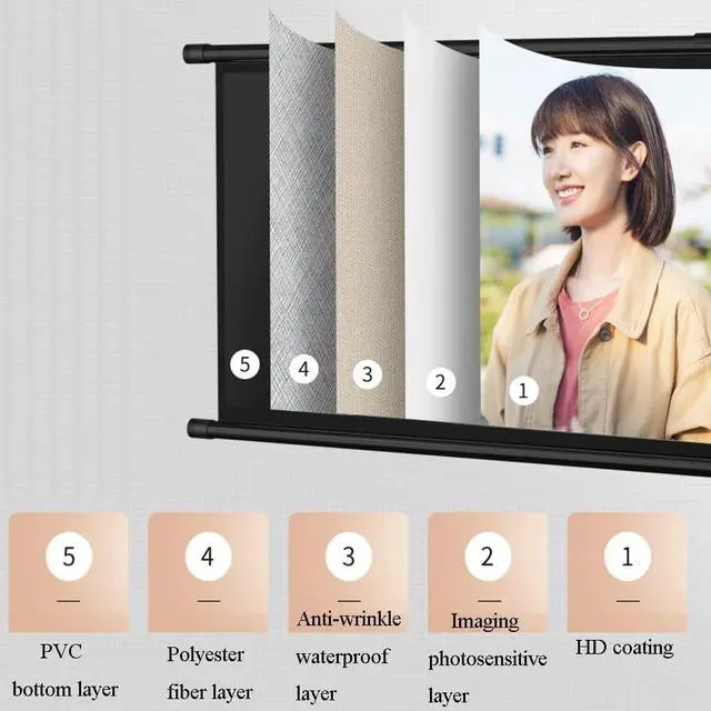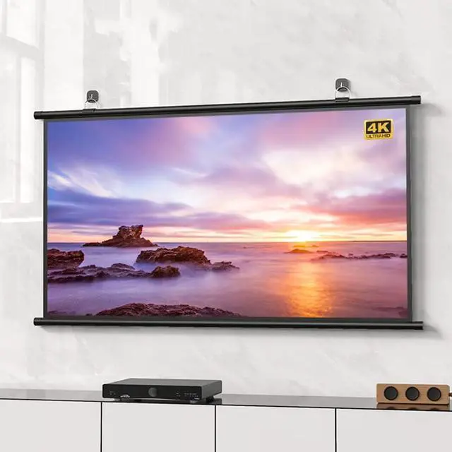60-inch projection screen supports 1080p, 4K, HD, 160° panoramic viewing angle and 16:9/4:3 field of view, allowing you and your family to enjoy a high-quality movie viewing experience.