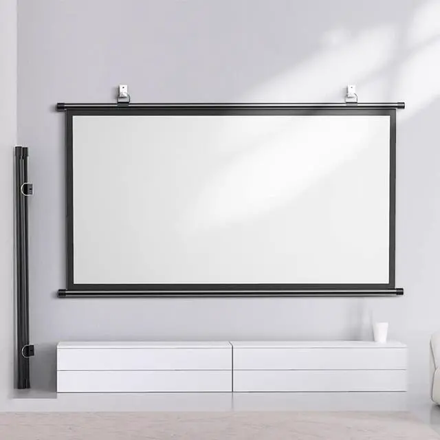 Roll up projection screen is designed for universal projection in any room which is perfect for use in home, office or classroom, compact, portable and lightweight carry.