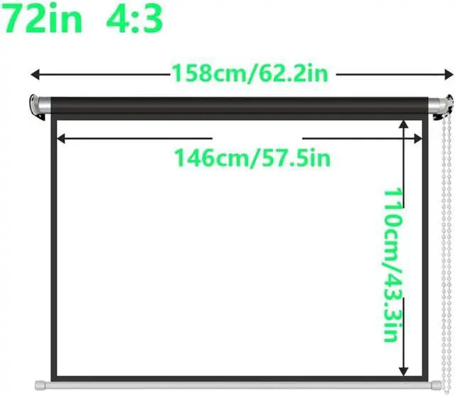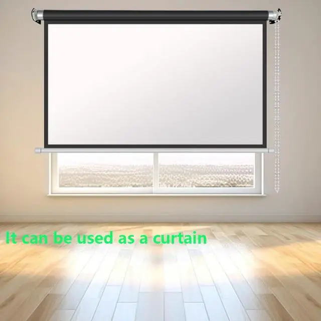 72in manual projection screen. Projection screen is designed with a bead chain drawstring, which is easy for the elderly and children to operate, and can be easily rolled up to save space.