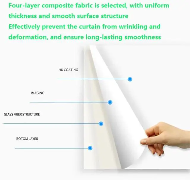 HD images. Indoor projector screen is made of white fiberglass, four-layer composite structure, anti-wrinkle and deformation, high-density color reproduction, more clear, 4K, 1080P.