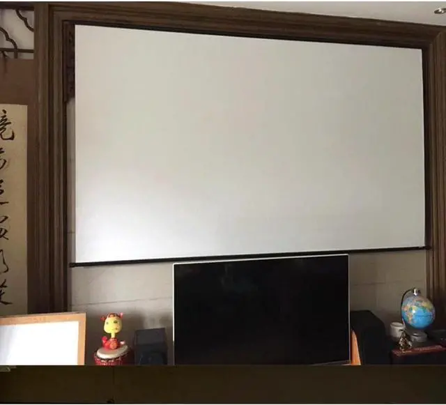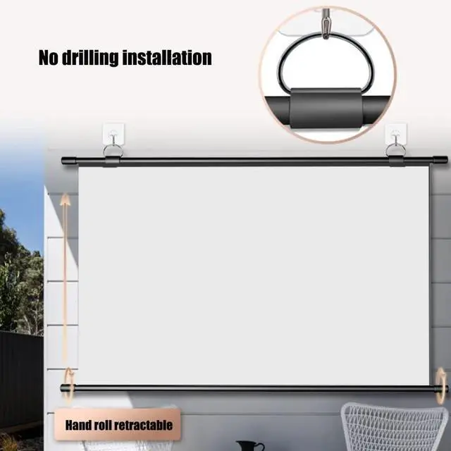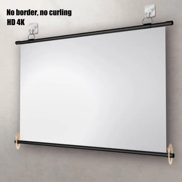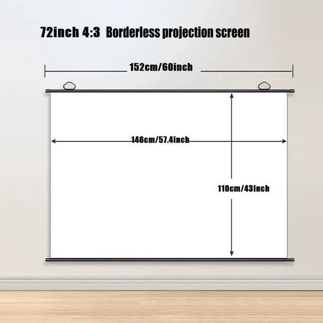 The wall-mounted borderless projection screen can turn your living room into a movie theater in minutes, and the stunning visual effects make you feel like you are in a virtual world, creating a new experience for you and your friends.Product features: dustproof, frameless, flat, not wrinkle-resistant, durable, easy to clean.Installation method: can be installed on the wall and ceiling.How to use: Pull down manually.Product name: Projection screenProduct material: glass fiberProduct color: whiteProduct Type: Wall MountProduct size: 60 inchesProduct ratio: 4:3/16:9Package includes: 1 × Projector ScreenNote:1. Due to manual measurement, the size error is 1-2 cm.2. Before placing an order, please confirm whether the size meets your needs.