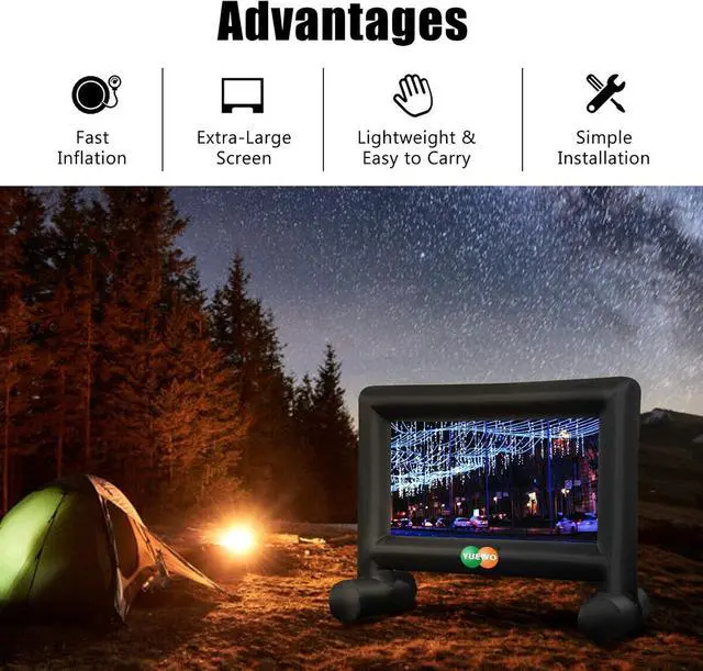 Innovative Screen Design: Higher screen and super wide angle of this inflatable projection screen give you a more comfortable viewing experience. Strengthen the fixed pull buckle to increase the fastness and add bottom support tube for more stable support. Giving stability to the screen to ensure a safe and fun movie.