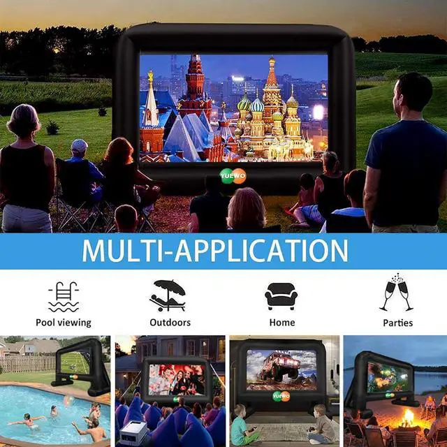 Superior Quality: This mega inflatable movie screen apply high quality, durable 210D oxford fabric, Long-lasting weather-resistant material allows long time indoor or outdoor use. Can be folded and easy to clean with cloth, without Wrinkles and don't broken. The smooth canvas surface can improve the image results and offer you the best viewing experience.