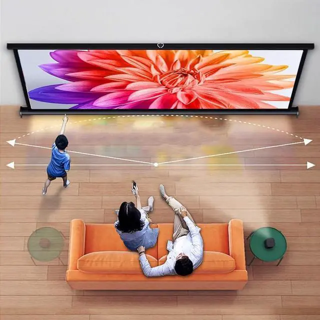 The manually pulled projector screen offers a wide viewing angle, displaying clear and vivid images from every perspective, giving you a perfect visual experience.