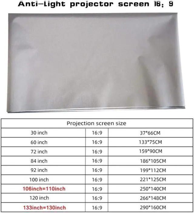 Projector Screen Simple 16:9 Anti-Light Curtain 30 72 84 92 100 106 120 130 133 Inches Home Outdoor Office Portable 3D HD(84 inch)