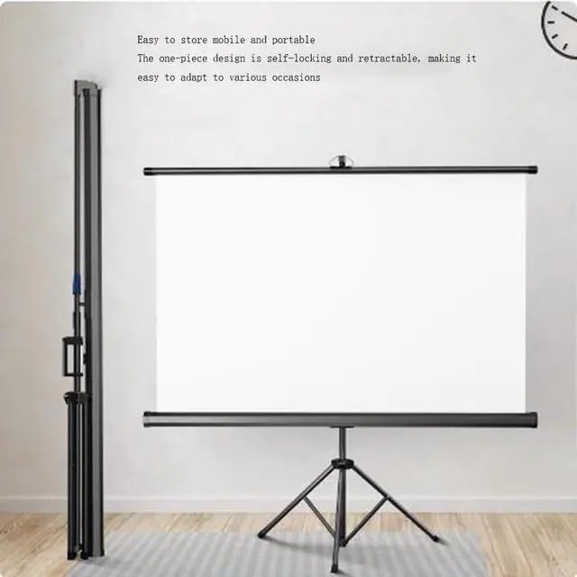 Projection screen floor stand: easy to install, the projector screen adopts an innovative design, it can be manually operated by pulling it up and down, it is convenient and fast, open the folding projector screen tripod, repair the bottom of the screen, pull up the projector screen and hang it, fix the telescopic pole, and it only takes two minutes to complete the whole installation process