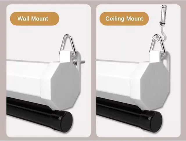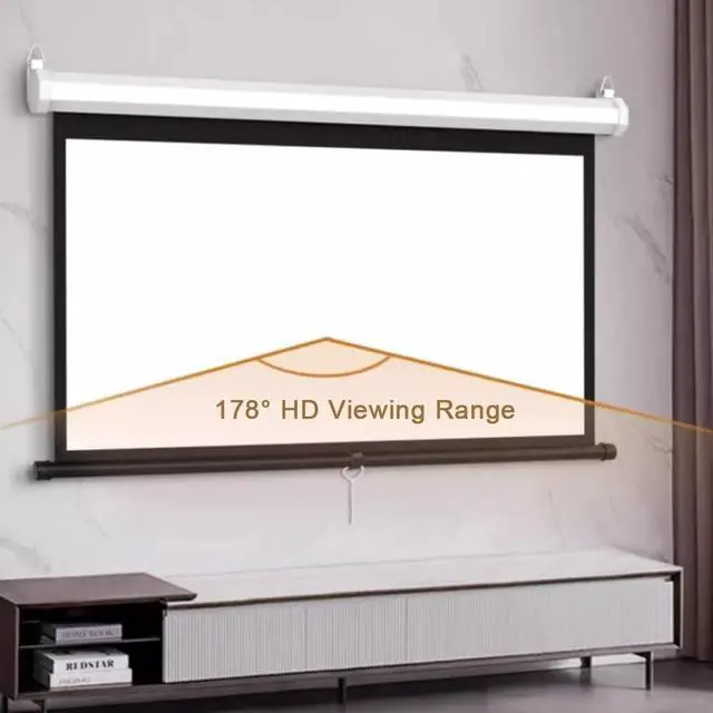 The manual Pull Down projector screen can be quickly installed in just a few minutes and the projection screen can also be used as window decoration.