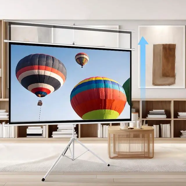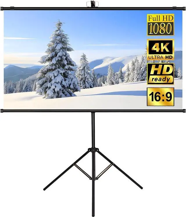 Portable and Quick Installation: The projection screen comes with a bracket. It only takes a few steps to easily assemble or disassemble this tripod projector screen. It can also be wall-mounted with a hook. The installation is simple and quick