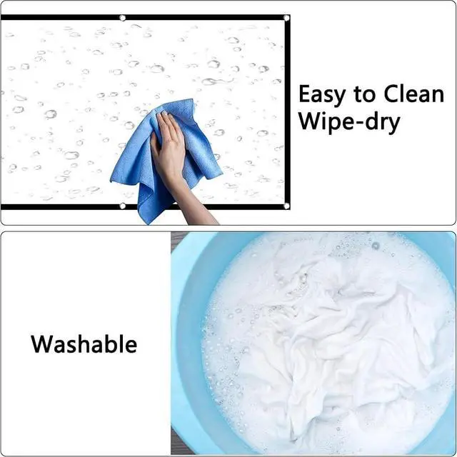Premium Screen Projector: The projection screen is made using foldable and washable polyester silk milk, which ensures wrinkle-free and keeps clean when folded, providing a high-resolution image. Enjoy sharp images and vibrant colors with our high-quality projector screens, where every detail will be highlighted with unparalleled clarity