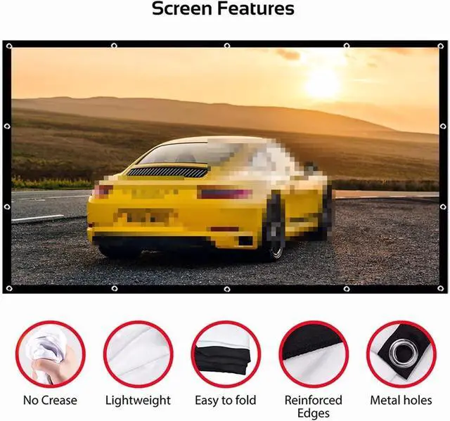 • The projector screen used soft touch and stretchy thick polyester fiber material to ensure wrinkle free after folded or compressed, providing clearer images, brighter colors and no color cast.