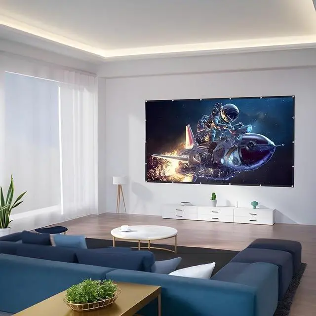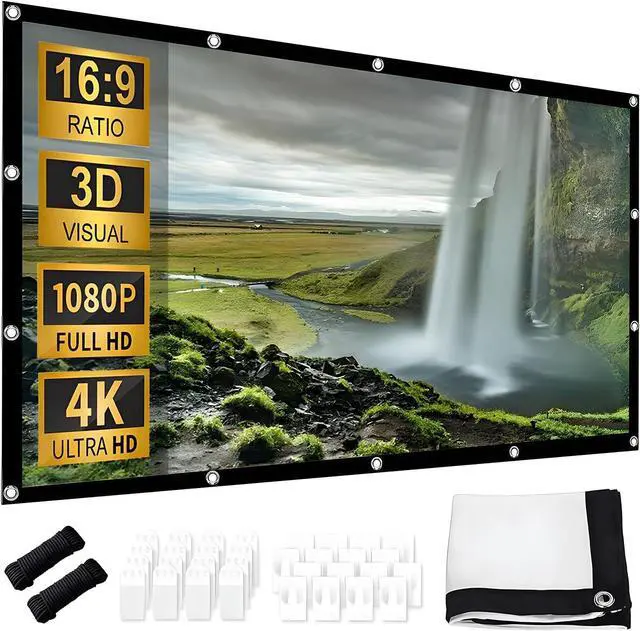 Wide application: The projector screen supports a display ratio of 16:9, which allows you to enjoy a clear and sharp image and can be used both indoors and outdoors. Whether it's a home theater, classroom, conference, or outdoor movie party