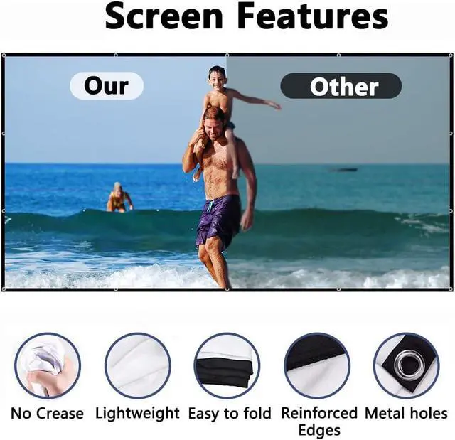Foldable and portable: The projector screen is lightweight and easy to carry, no matter where you go. You can enjoy the image without worrying about any unsightly creases or wrinkles