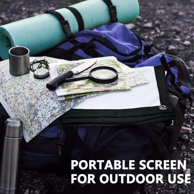 Portable projector screen: The projection screen is made of milk polyester, which ensures a sharper image, brighter colors, and no color shift when folded or compressed. There won't be any spots on the projection screen that would affect the viewing experience, and it's thick enough