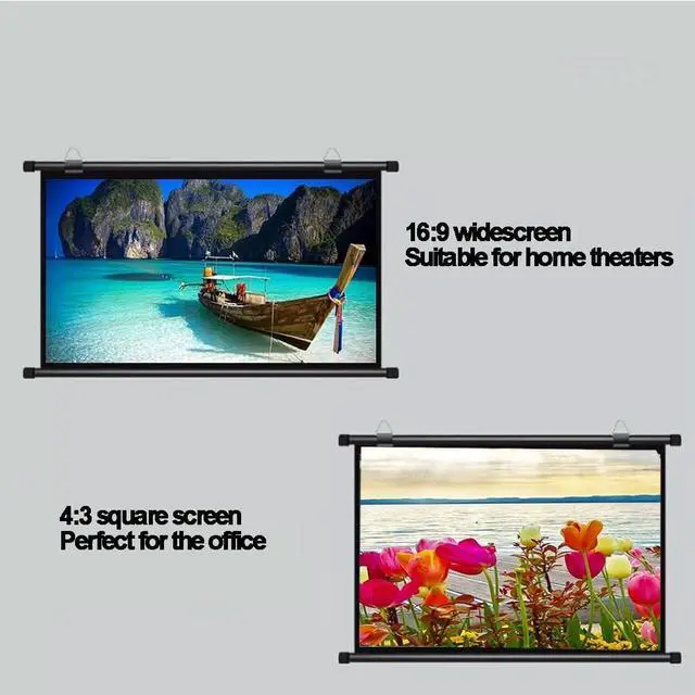 The high-definition projection screen presents crisp cinematic images and high-resolution images with vivid colors. It also has two screen ratios of 16:9 and 4:3 for you to choose from, which is perfect for playing movies and videos.