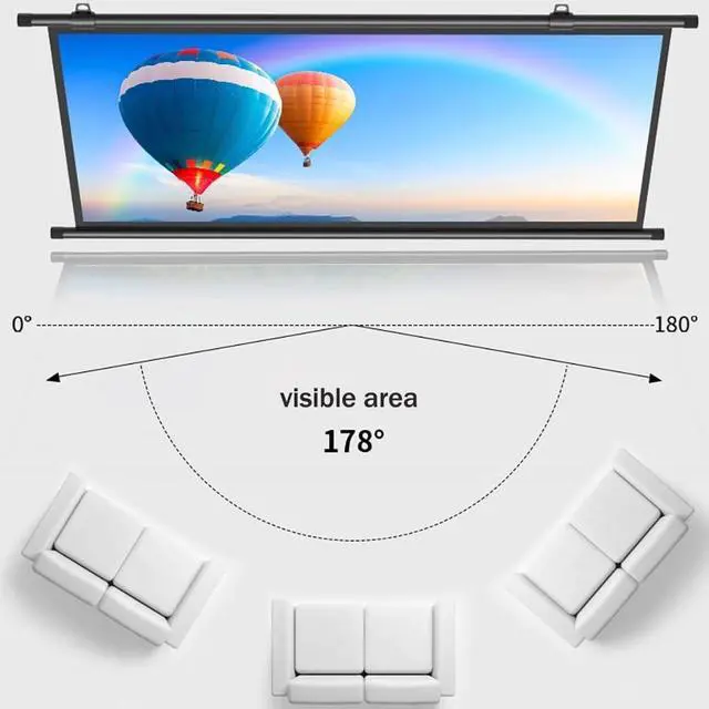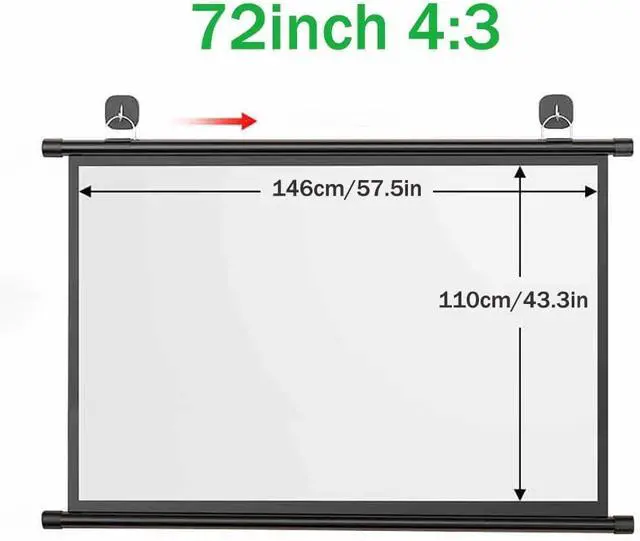Manual roll-up projection screen for easy portability and installation. Suitable length for mounting on the wall or ceiling. You can enjoy theater level viewing at home. Support 3D 4K. it is great for family gatherings and parties.