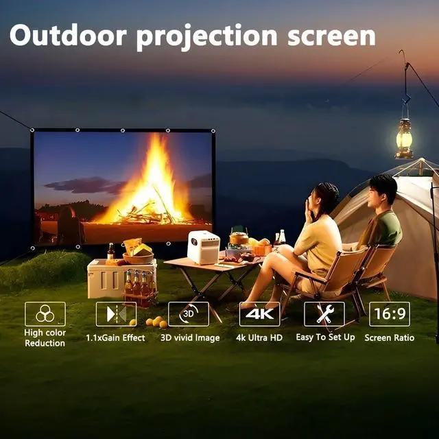 Cinematic experience: 16:9 format for projector screens. You don't need to sit directly in front of the screen, just choose the most comfortable viewing position and enjoy an exciting movie night. Even if you want to invite neighbors or friends to watch a movie together, it won't seem crowded