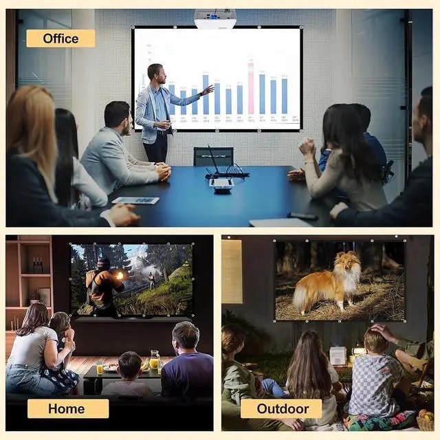 Wide use: The projector screen is ideal for home theater movies, offices, education, conference room presentations, games, KTV singing, public displays, outdoor movies, etc