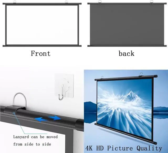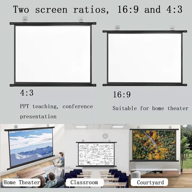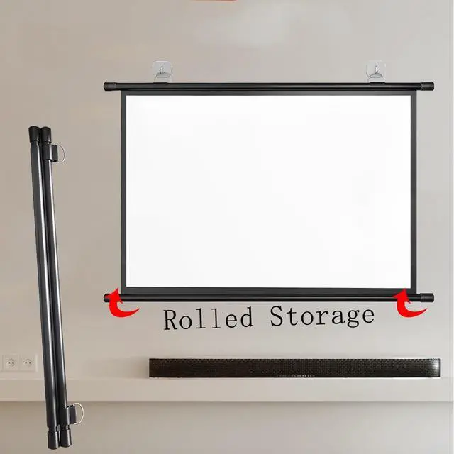 Manual pull-down projection screen, lightweight, manually rolled up for easy storage and portability, can be packed into a backpack or suitcase and taken anywhere with the storage bag.
