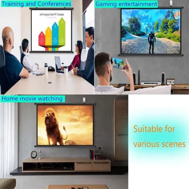 Quick Installation:Our projection screen can be easily installed, quickly assembled, and can be mounted on walls and ceilings, which not only keeps the screen stable, but also brings a better viewing experience