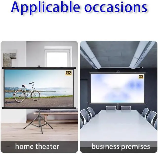 Portable projection screen, projection screen selection of high-quality materials, scientific optical coating, not only to maintain the original brightness so that the color reproduction to realistic, projection screen are used in the black masking bezel, enhance the overall picture contrast.