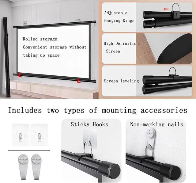 The roll-type storage design allows the projection screen to be easily placed in a bag or suitcase for storage. It takes up little space and requires no installation, making it easy to use on the go.