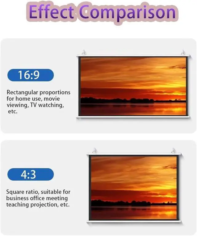 Hand Pulled Projection Screen: our projection screen cloth adopts manual pull-down design, pull open can be used in the daily party, home theater use is very convenient
