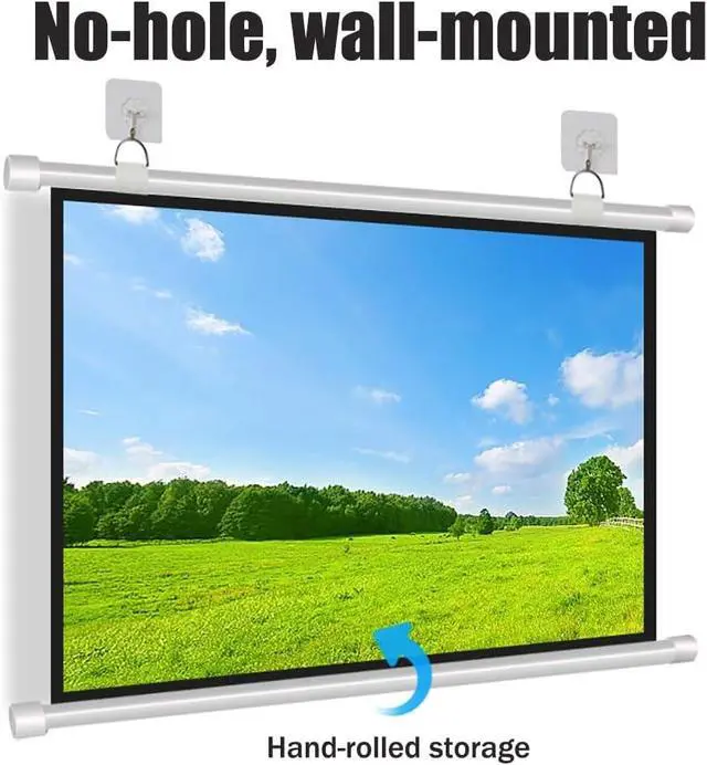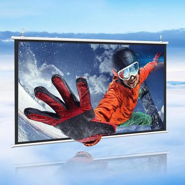 Portable and easy to install: This screen projector is lightweight and the reel design can be placed in the corner to save space. Easy to install, the whole process is not complicated, it only takes one person 5 minutes to install.