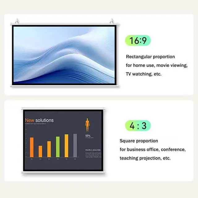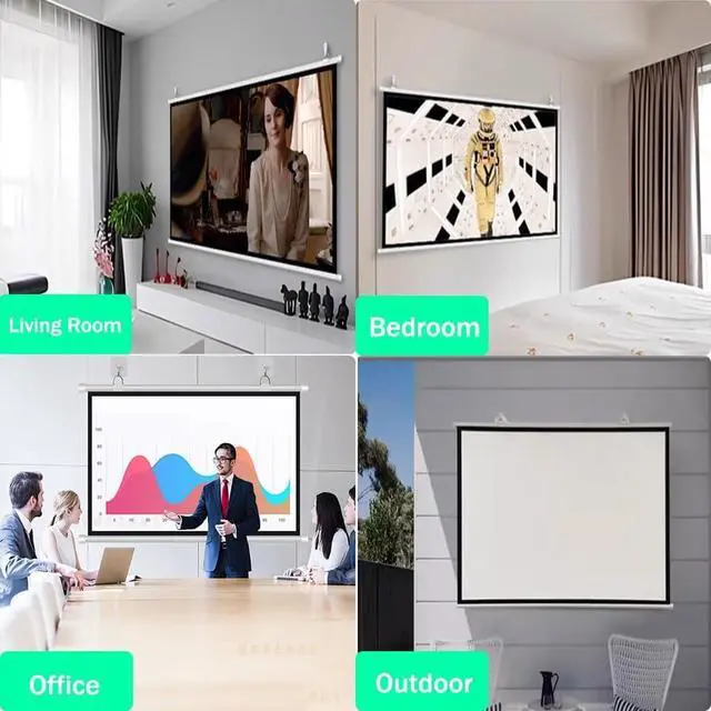 Widely used: For home theater, education, office, media, theater, beach, travel, terrace, classroom and so on. Our projector screen can also be used for your family, friends to enhance the relationship by sharing the viewing experience or talking about the plot of the movie night.