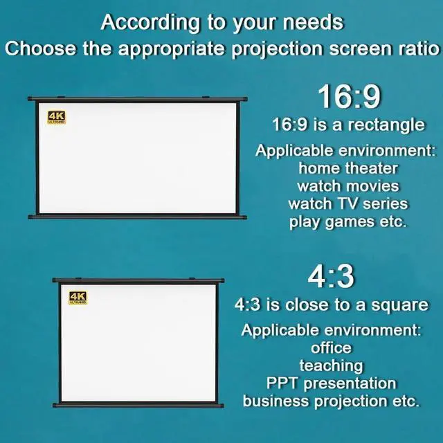 Screen Format: The home theater projection screen has 4:3/16:9 format, support 4K and full HD images, bringing you great visual enjoyment