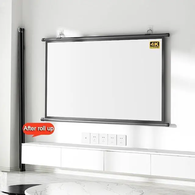 Portable: Manual pull down projector screen, lightweight, easy to carry and store, can be installed on the wall or ceiling, saving time and space