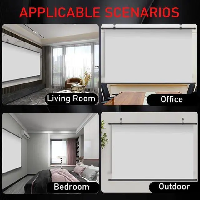Manual pull-down movie screen is made of white fiberglass material, support 34K quality projection, clear and delicate picture quality is lifelike, giving you an immersive experience!
