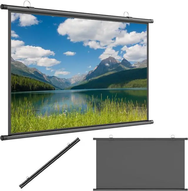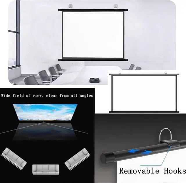 The portable video projection screen has a lightweight roll-type storage design that can be manually rolled into a small size, packed into a backpack or suitcase, and taken anywhere with the storage bag.