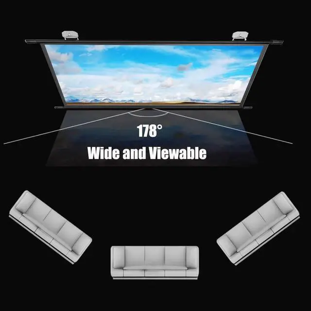 The wrinkle-free movie screen is made of white fiberglass to provide clear images, making the movie picture more realistic and the colors more restored, and comes with a black light-blocking frame to improve image focus.
