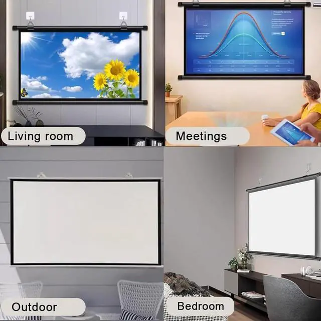 The projection screen is easy to install without tools. Just use the included adhesive hooks or traceless nails to complete the installation. It can be applied to walls of different materials.