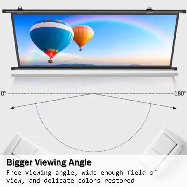 178° Wide Viewing Viewing: Offering up to 178° wide viewing angle and a high-quality matte white surface, you and your family can choose a comfortable seat and position to enjoy movie nights without crowding in front of the screen.