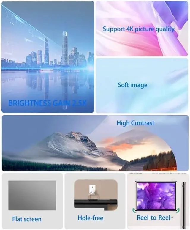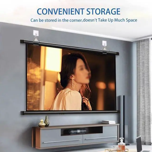 Manual roll up projection screen can be used for home theater, living room, bedroom, office, classroom, etc. Compact and lightweight easy to store to save space.
