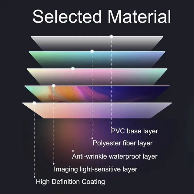 Material: The projection screen is made of white fiberglass, the screen is wrinkle-free, flat and easy to clean, the picture quality is fine, giving you an immersive experience.