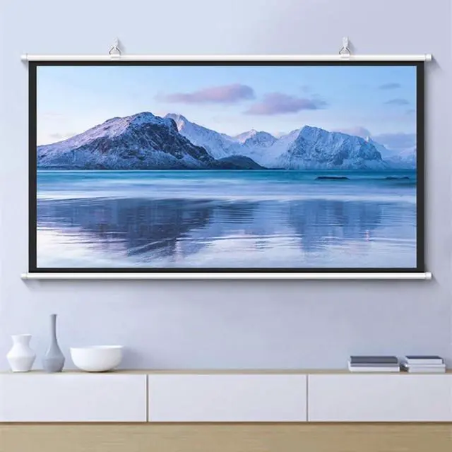 Material: The manual projector screen is made of white fiberglass, can be used for a long time without fading or deformation, thick and smooth, anti-crease