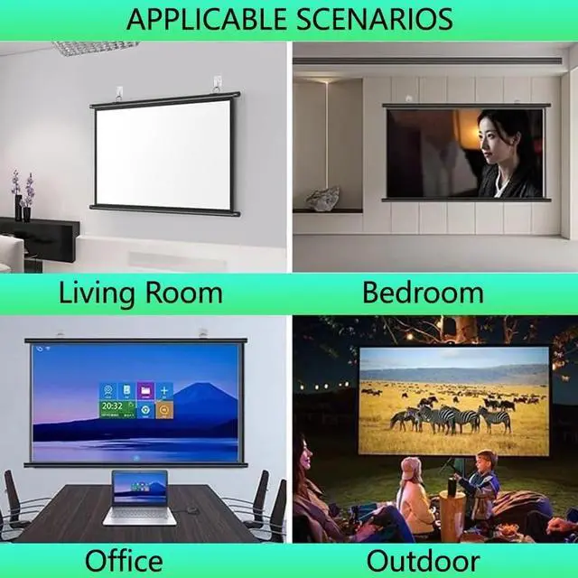 Size: 30 inches, 40 inches, 50 inches, 60 inches, 72 inches projection screen, available in 16:9/4:3 aspect ratio, it is lightweight and portable, and can be easily rolled up and stored manually